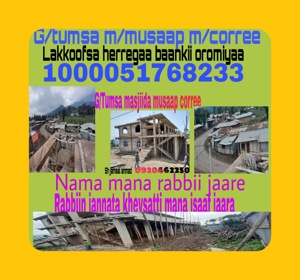 Deeggarsa masjiida kanaaf haa goonuu Garee tumsa masjiida magaalaa corree Garee tumsa masjiida musaap magaalaa corree Share this: Click to share on X (Opens in new window) X Click to share on Facebook (Opens in new window) Facebook Like Loading... Related Published by Raadiyoo Mb View all posts by Raadiyoo Mb